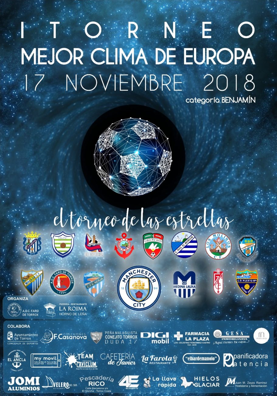 La notícia que os queremos contar. El próximo 17 de noviembre nuestro Benjamín de 2ª Andaluza entrenado por Arjona, disputará un torneo internacional en Torrox ( Málaga), con equipos como Manchester City, Málaga CF , Granada CF,ADC Faro Torrox, CFV Nerja, etc.. Gran evento donde nuestros niños disfrutarán y los mayores disfrutaran de ese Gran Dia. Ilusión y Sentimiento Esfubasa