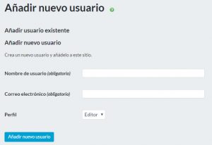 Como sólo puede haber un/a administrador/a por sitio web, el/a nuevo/a usuario/a sólo podrá tener el rol de editor/a.