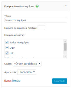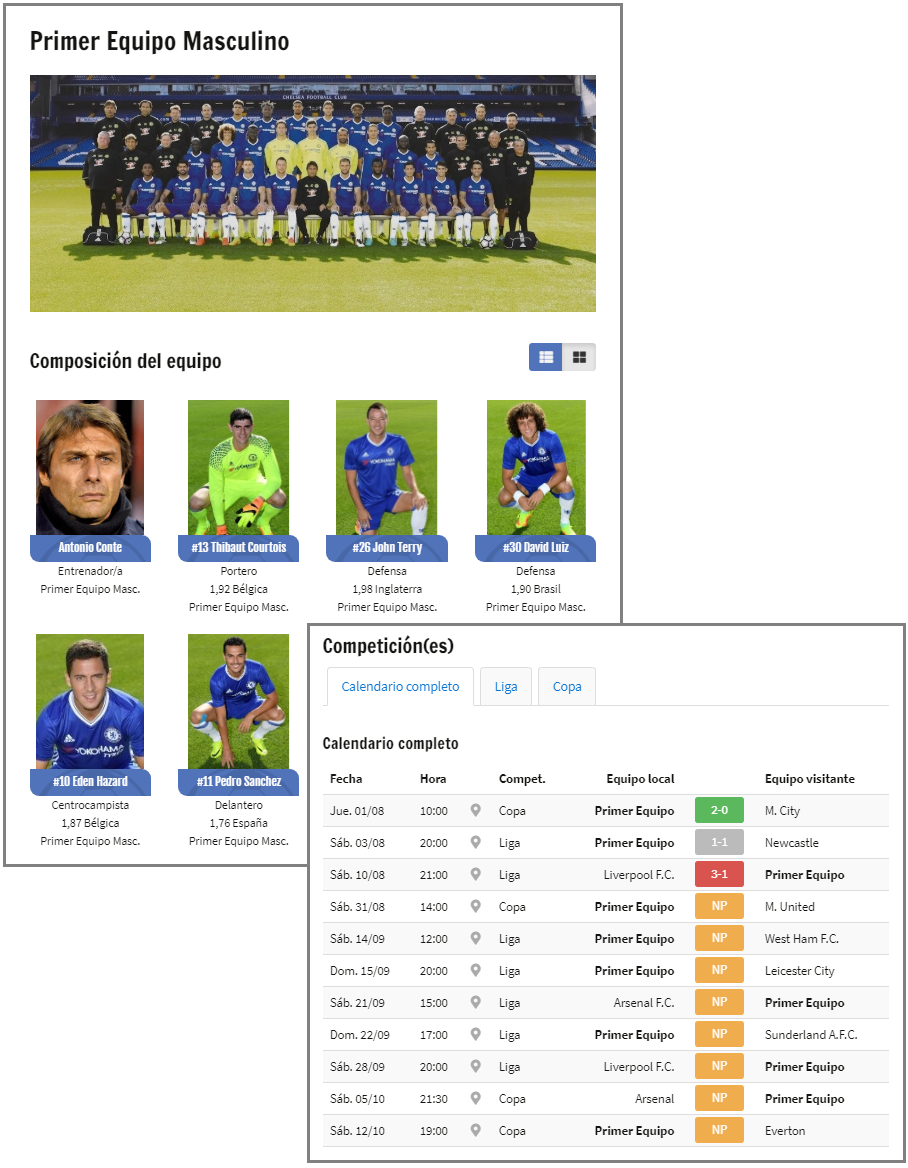 Página : Tipo de contenido correspondiente a una única página específica de su sitio web (al contrario que con las noticias, que se agrupan en distintas páginas de su sitio web) y que poseen su propia entrada en el menú. Las páginas se encuentran en las secciones “El club”, “Equipos”, “Información”, “Patrocinadores” y “Contacto”.