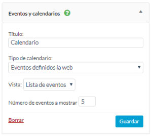Widget : Pequeño módulo que el/la administrador/a puede situar en una de las 3 zonas (5 en tarifa Premium) resrvadas para ellos en el sitio web. Además de ser muy útiles, los widgets sirven también para adornar el sitio web y darle un look completo y moderno. Permiten, por otra parte, resaltar ciertos tipos de contenidos (ej: los eventos próximos).