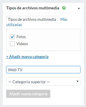 Archivos Multimedia : Archivos (imágenes, vídeos, audios y otros documentos) que pueden ser añadidos a una página/noticia/equipo/galería. Los archivos multimedia cargados a través del escritorio son automáticamente añadidos a la biblioteca multimedia.