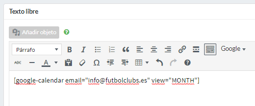 Debajo, el cuadro titulado “Descripción” le permite añadir una descripción libre de la instalación deportiva. Este cuadro se rellena haciendo uso del editor de texto (explicado en la sección “Editor de texto“). Por ejemplo, puede utilizar esta descripción para indicar la información técnica del terreno de juego.