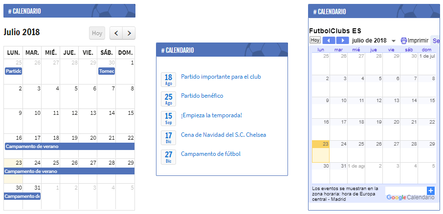 Widget : Pequeño módulo que el/la administrador/a puede situar en una de las 3 zonas (5 en tarifa Premium) resrvadas para ellos en el sitio web. Además de ser muy útiles, los widgets sirven también para adornar el sitio web y darle un look completo y moderno. Permiten, por otra parte, resaltar ciertos tipos de contenidos (ej: los eventos próximos).