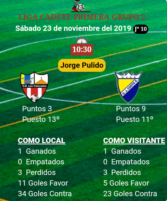 Sabado 23/11/2019 a las 10:30 Horas. se celebrará en el Jorge Pulido.