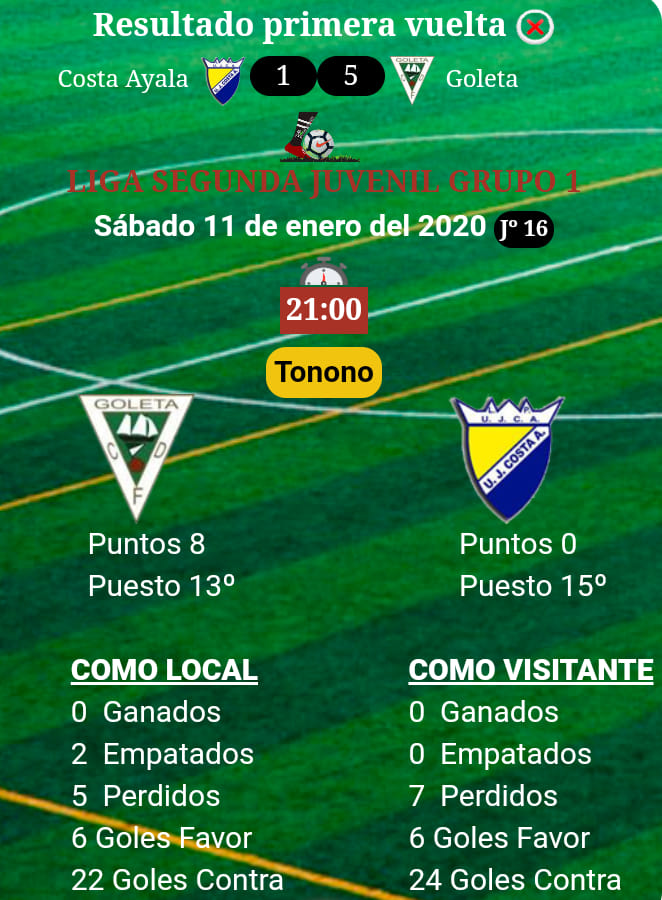 Decimosexto encuentro de la temporada 19/20. 10 enero, 2020Últimas noticias Decimosexto encuentro de la temporada 19/20. Sabado 11/01/2020 a las 21:00 horas se celebrará en El Tonono Con tu apoyo obtendremos la victoria ¡TE ESPERAMOS! ⚽⚽⚽
